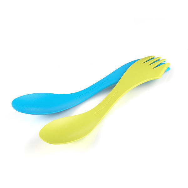 Pakkaus, jossa kaksi pitkää, monikäyttöistä Spork Large kauha-haarukka-veitsi ?yleistyökalua ruuan valmistukseen ja tarjoiluun. Toimii pöydässä trendikkäänä tarjoiluastian ottimena tai kokkauksessa grillivälineenä, kauhana sekä pannu- ja wokkiruokien käsittelyssä.